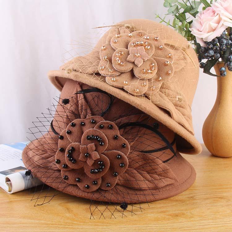 New Hat Ladies Korean Version Bowler Hat Handmade Beaded Woolen Woolen Pot Hat Autumn And Winter Warm Bucket Hat