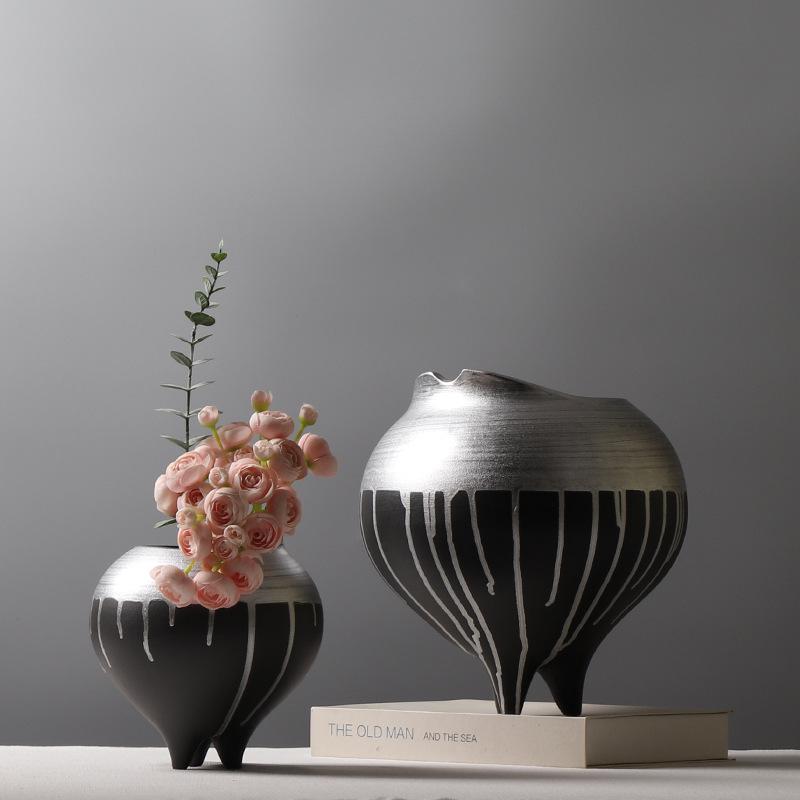 Silverfärgblockerad Keramisk Vas Blomvas Kruka Keramiska Hantverk Blomsterarrangemang Tillbehör Heminredning