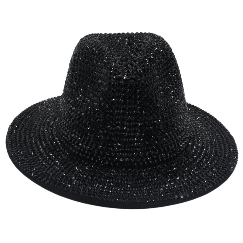 Cross-Border New Stage Performance Fashionable And Shiny Handmade Point Diamond British Retro Woolen Jazz Hat Felt Top Hat