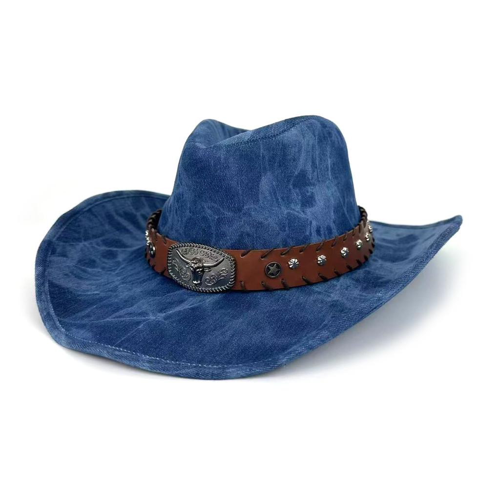 Western Cowboyhatt Europeisk och Amerikansk Stil Rese Ko Huvud Bälte Jazzhatt Män och Kvinnor Persikofärgad Hög Hatt