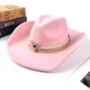 New Western Cowboy Hat Men'S And Women'S Bullhead Peachheart Top Woolen Jazz Hat Big Edge Top Hat