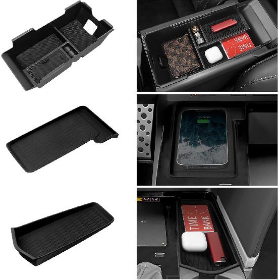 3PCS Center Console Organizer Compatible With Toyota 2025 2026 Camry Accessories Silicone Wireless Charging Anti-Slip Mat ABS Material Armrest