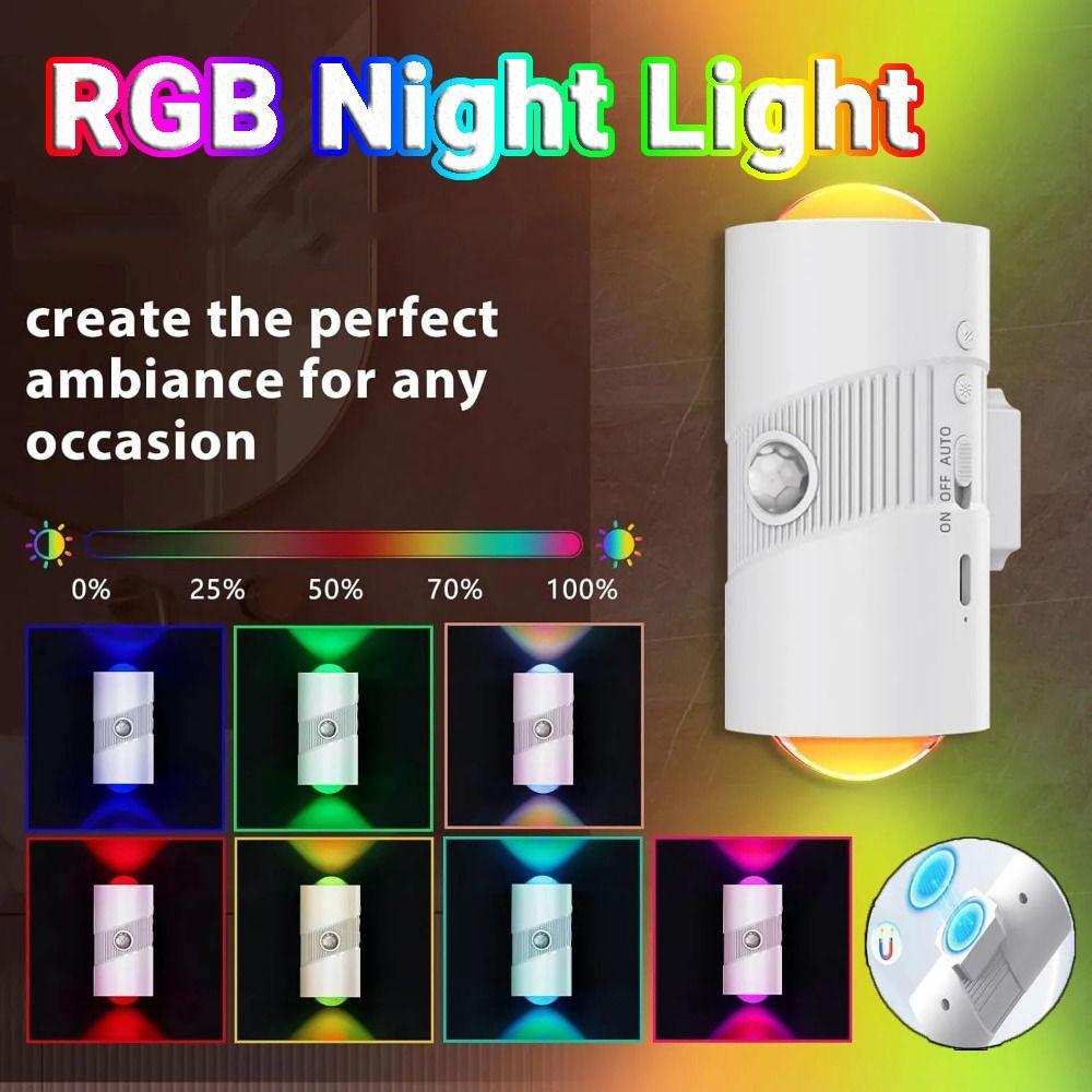 Colorful Gradient Motion Sensor Night Light Rechargeable RGB Gradient Wall Lamp Hallways