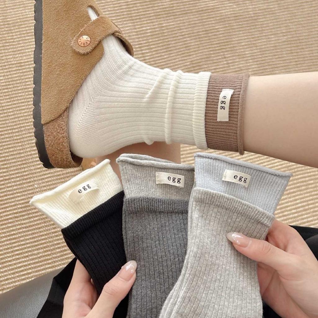 Dubbel Luo Mun Äggtyg Etikettstrumpor Flickor Koreansk Stil Personlighet Kontrastfärg Mellanhöga Strumpor Strumpor Bomullsfrottéstrumpor
