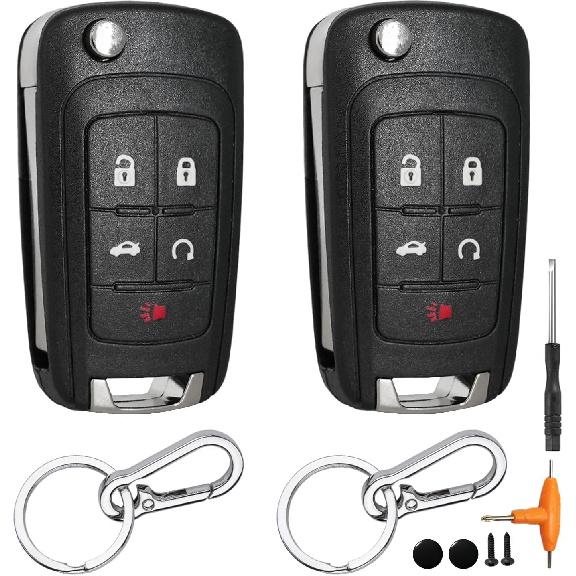 2 Pack 5 Button Key Fob Case For Chevy Cruze Equinox Impala Camaro Malibu Sonic GMC Terrain Buick Lacrosse Regal Verano Encore 2018 2017 2016 2015