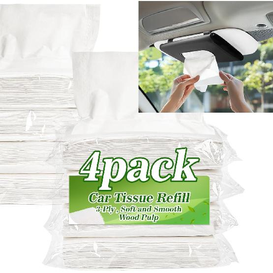 4 Packs 200 Car Tissues - Car Tissue Refill 3-Ply 50 Sheets Fit For Visor Napk Holder Long-Lasting Travel Ultra-Soft And Smooth Gift For Vehicle