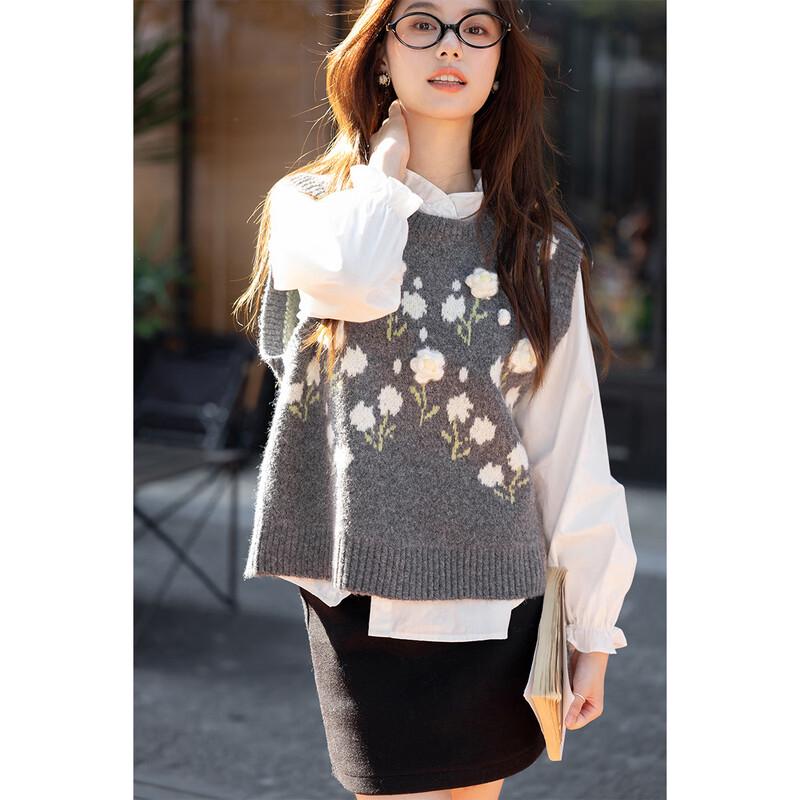 ITISF4 Korean Sweet 3D Floral Knit Vest