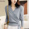 ZANZEA Women Casual Round Neck Long Sleeve Splice Tee Shirts