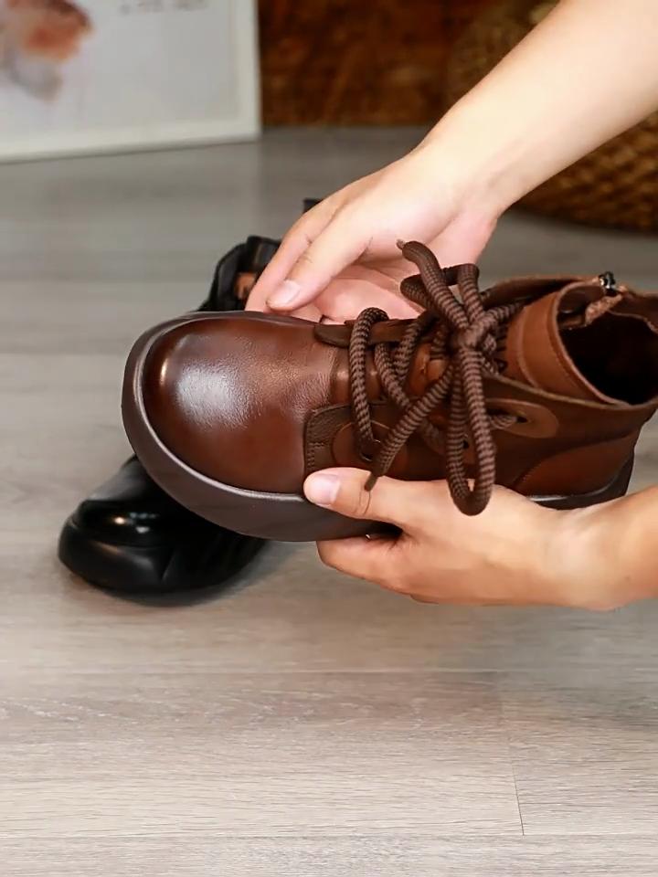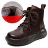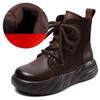 Johnature Genuine Leather Short Boots Retro Versatile Plush Warm Thick Bottom Side Zipper Women's Boots