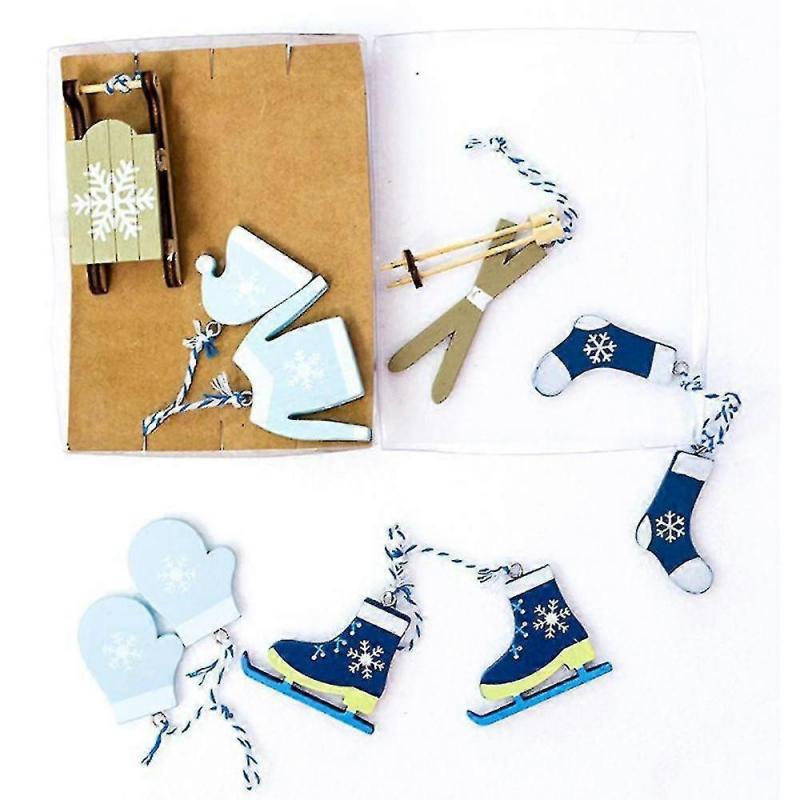 7pcs Christmas Tree Ornaments Winter Sports Christmas Wooden Tags