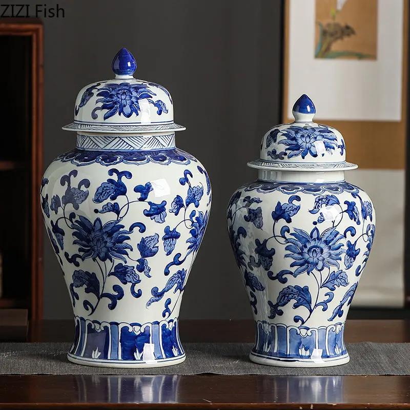 Blue and White Porcelain General Jar Tea Canister Candy Pots Flower and Bird Decorative Ginger Jar Desk Decoration Flower Vase