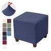 Solid Color Jacquard Square Ottoman Cover Elastic All-Inclusive Footrest Slipcovers Stool Covers Protector For Living Room Decor