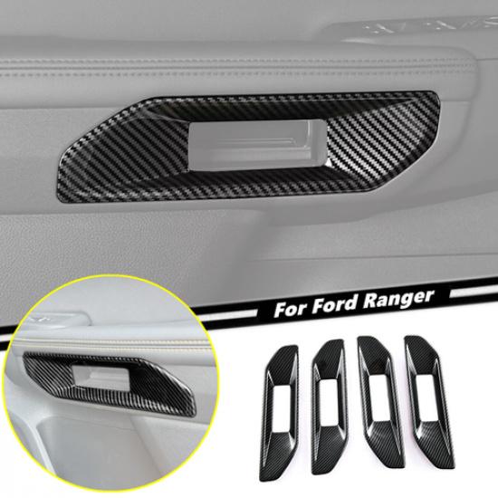 For Ford Ranger -2025 ABS Carbon Fiber Inner Door Handle Bowl Cover Trim 4P