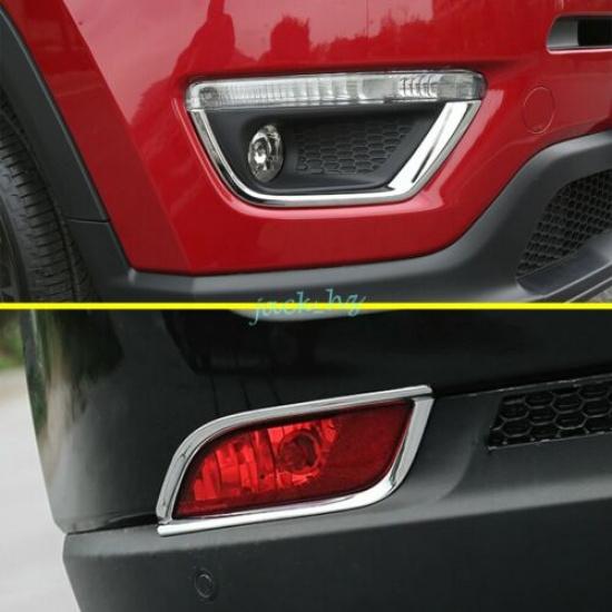 Front + Rear Fog Light Cover Trims For 2017- Jeep Compass Chrome Accessories