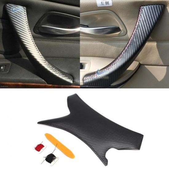 Carbon Texture Sewing Leather Door Handle Pull Cover For BMW 3 Series E90 05-12