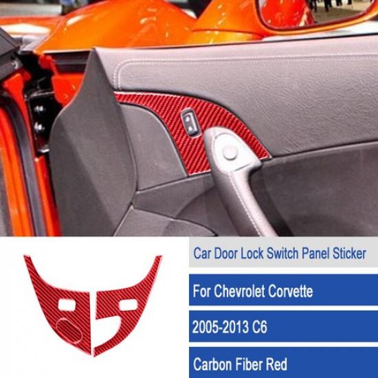 Bright Carbon Fiber Car Front Door Lock Button Panel Cover For Corvette C6 05-13