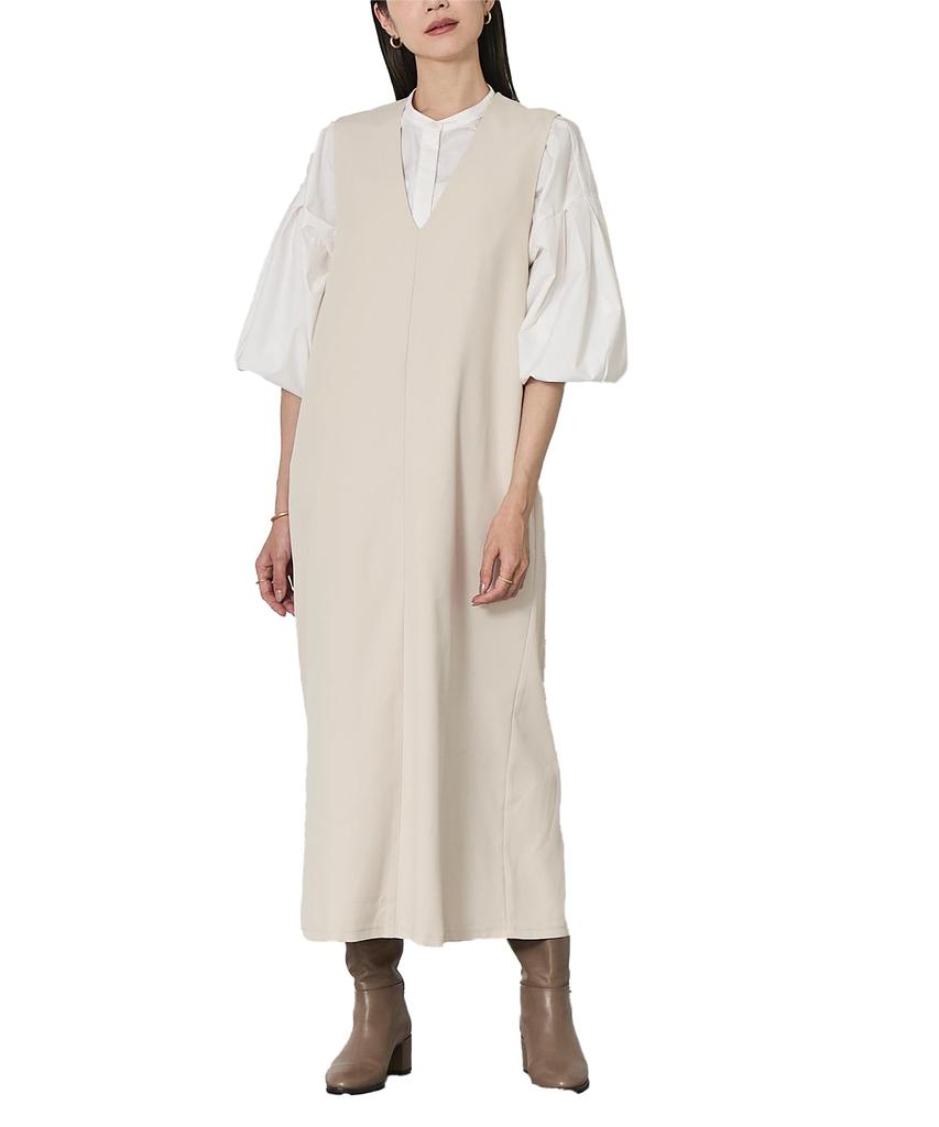 This long dress features a sophisticated, simple design, perfect for mature women. Key Features: Deep V-neck: Creates a clean, feminine décolleté line while maintaining a feminine silhouette. I-line silhouette: Moderately roomy yet clean and beautiful, it maintains a neat and tidy look. Soft twill material: Lightweight and comfortable, it offers a refined texture. Versatile: Pair with the matching jacket (BBXN1389) for a formal look, or change the inner layer for a more casual look. Note: Depending on the production period, color variations may occur between the product and the suggested pair. Thank you for your understanding. Coordination: Pair with a jacket for office or formal occasions. The simple design is perfect for casual wear, with a cardigan and accessories to add a touch of style. Enhance your femininity with heels or pumps, or pair with sneakers for a more casual look. This versatile dress offers a wide range of styling options. *Due to the machine production process, this product may have some "seams in the thread when weaving the fabric" or slight imperfections.