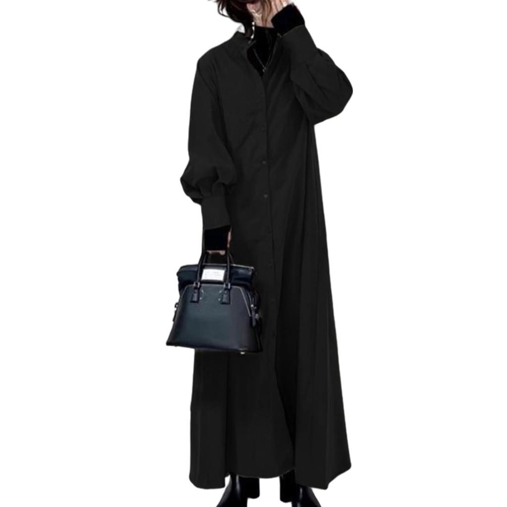 [A-Line Stand-Up Collar Shirt Dress] Introducing a refreshing dress perfect for spring and autumn! This A-line maxi dress flatters your figure, creating a slimming effect. The stand-up collar flatters your décolleté and slims your face. The flared lines that unfold with every movement create an elegant look, creating a relaxed yet sophisticated look. This shirt dress and color-matching design will enhance your feminine elegance and make you look beautiful this season!