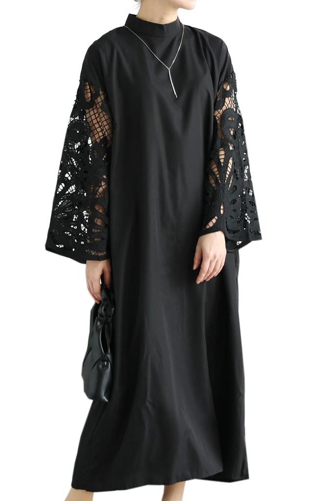 A long dress with lace sleeves that looks stylish on its own.