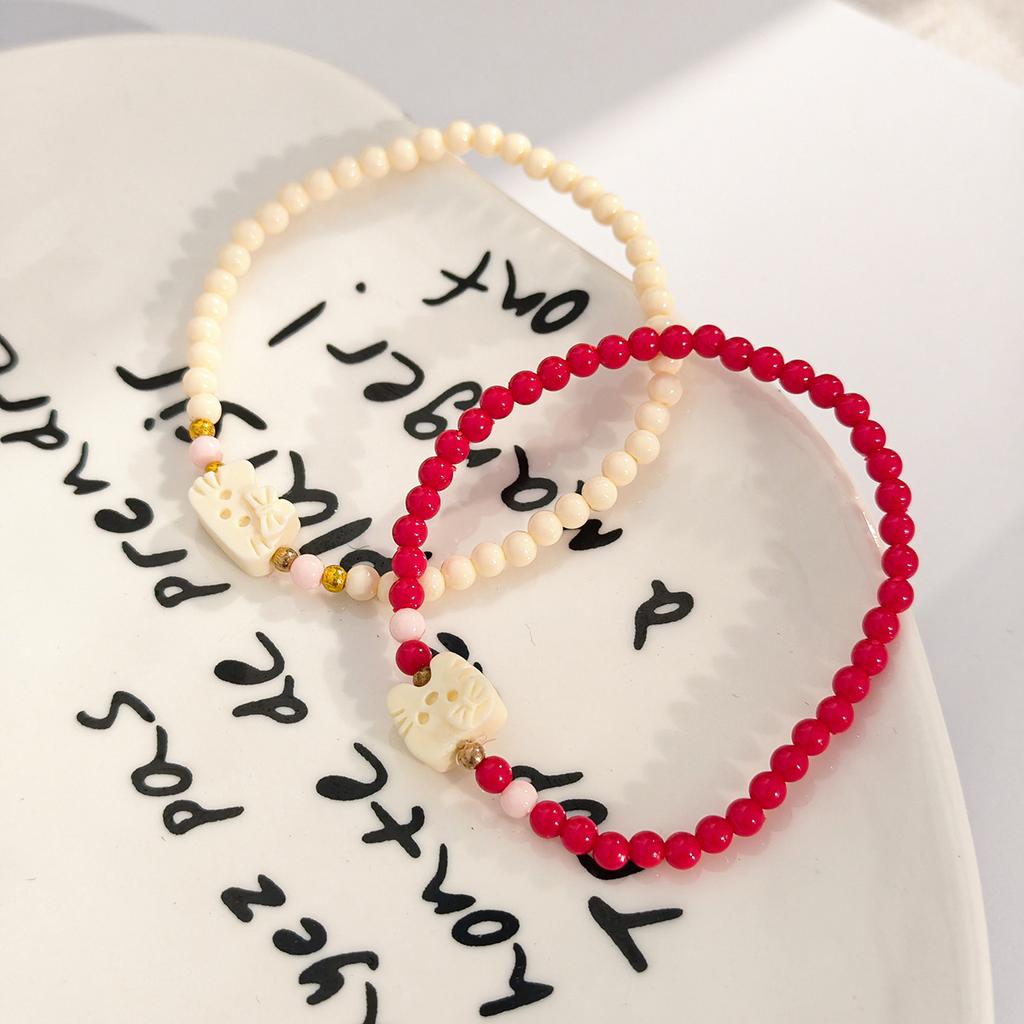 Colored Rice Beads Irregular Cat Design Bracelet, Light Luxury High-End Creative Cartoon Cute Temperament Jewelry