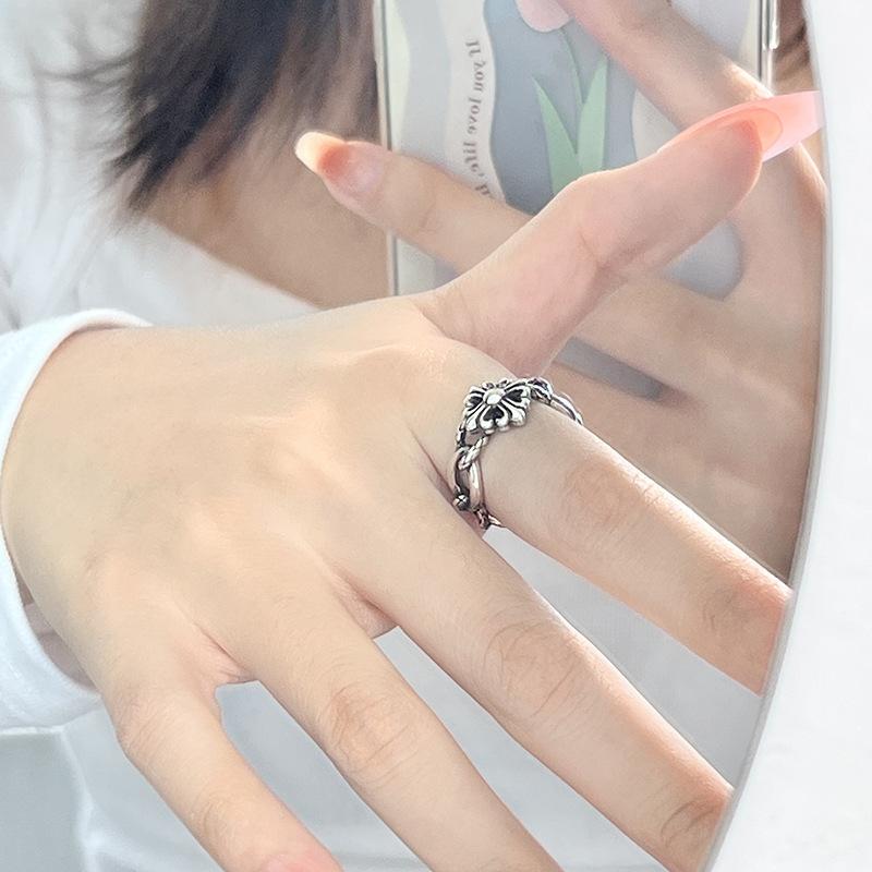 Niche Design Sense Personality Cross Diamond Set Vintage Ring Premium Sense Punk Vintage Simple Open Ring Women