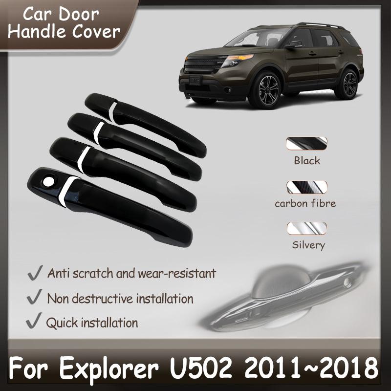 For Ford Explorer U502 2011~2018 Car Door Handle Cover Stickers Trim Gloss Black Decoration Exterior Auto Accessories 2013 2014