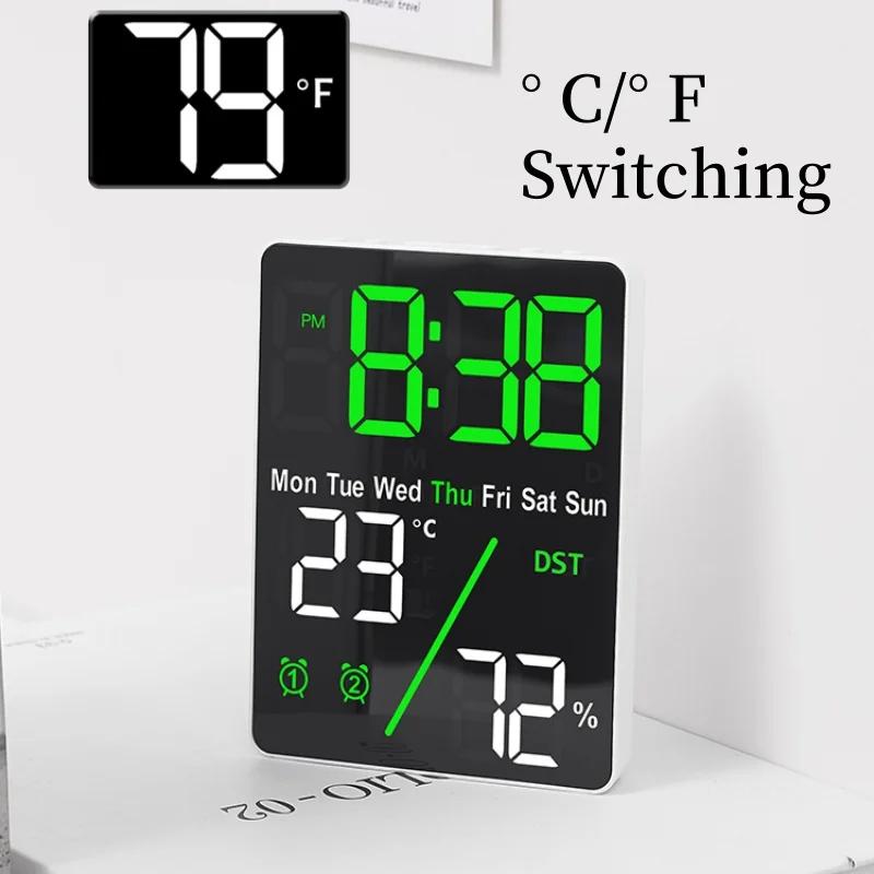 Multifunctional Large Screen Digital Alarm Clock Humidity Display Brightness Adjustment Charging Desktop Clock Home Office Decor