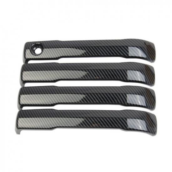 Carbon Fiber Style 4PCS Side Door Handles Trims Cover For Toyota Tundra +