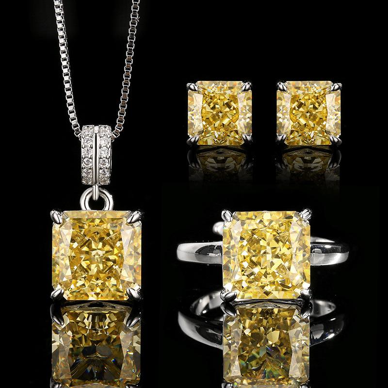 2025 Inlaid Diamond Jewelry Jewelry Set Earrings Ring Necklace Square Diamond Ice Flower Cutting Jewelry Fashion Light Luxury Women