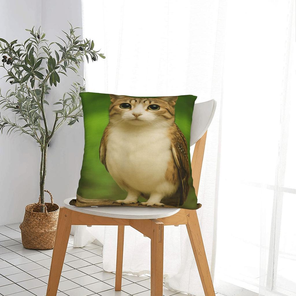 Internetberömd Meowl Cat Owl Meme Kuddfodral Tryckt Kuddfodral För Soffa Sovrum Moderna Kuddfodral