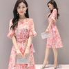 Women Summer Tight Waist Flare Sleeve Floral Printing Lacing Dress