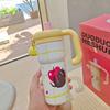 Floral Cartoon Handle Stainless Steel Vacuum Insulated Cup with Tea Infuser and Straw