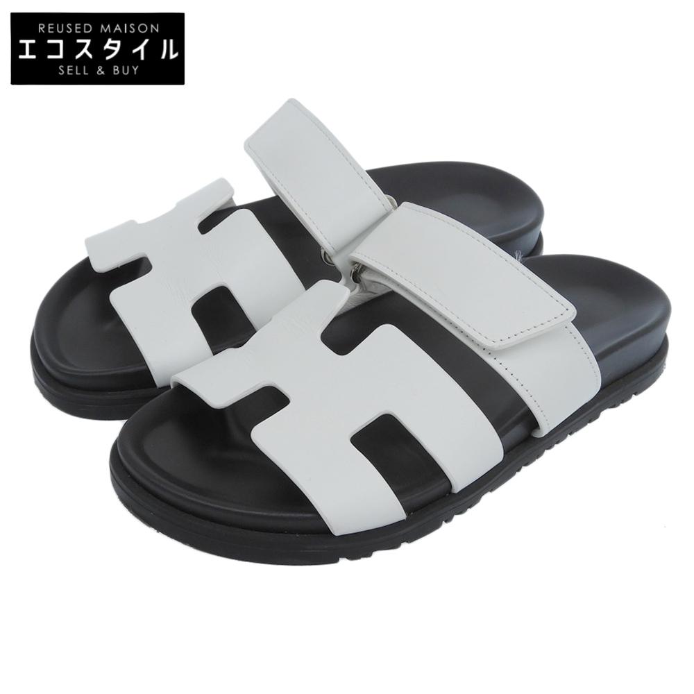 HERMES Chypre Flat Leather H Sandals, Women's, White, Size 36 shoes 36 whiteUsed