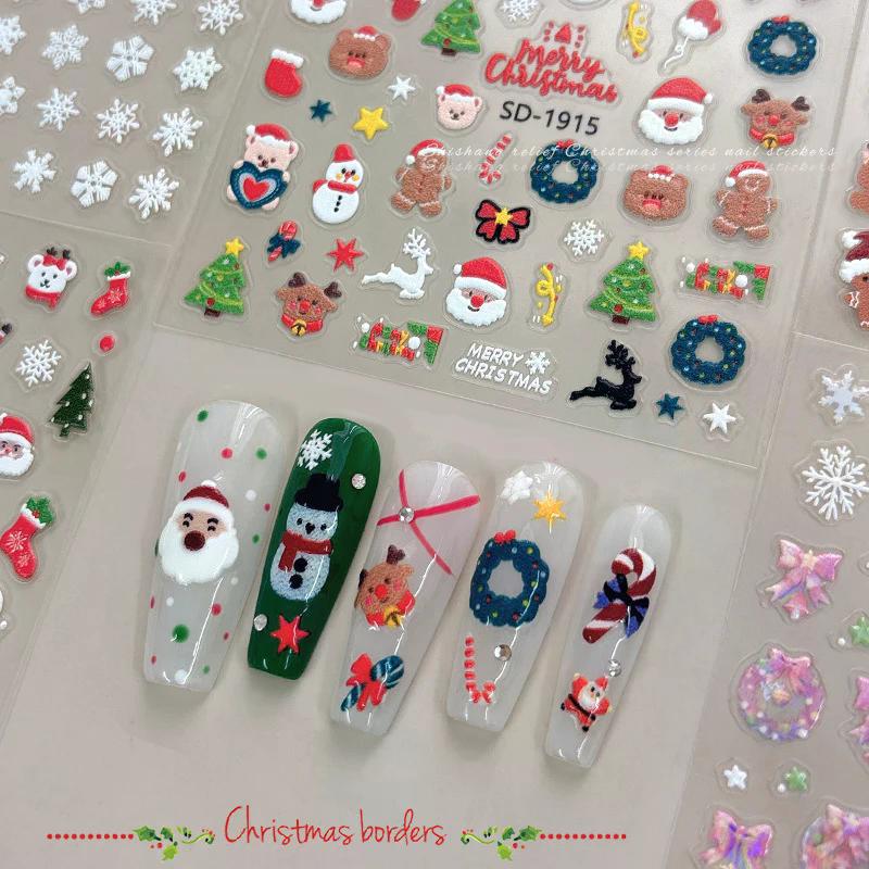 Jul Härliga Tecknade Rosett Jultomte Snögubbe Julgran Älg Snöflinga Nail Art Stickers Jul Söta Manikyr Dekaler