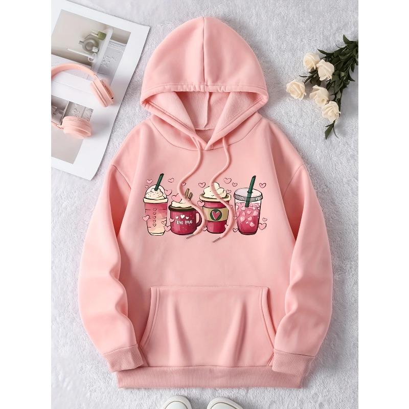 Mode Tryckt Mångsidig Tröja Casual Lös Huvtröjor Tröjor Dam