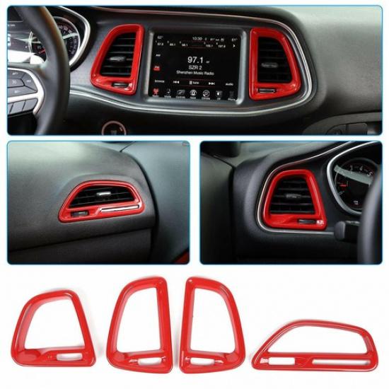 4PCS Center Console Air Condition Outlet Vent Trim for Dodge Challenger 2015+