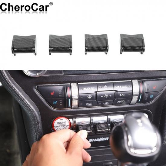 Carbon Fiber Center Console Dashboard Button Cover Trim For Ford Mustang 2015+