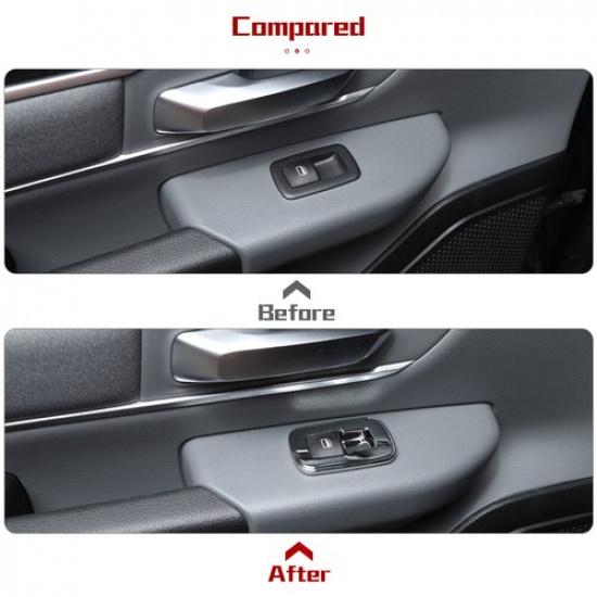 4X Interiör Fönsterhissknapp Ram Dekor Cover Trim för Dodge Ram 2018+ Krom