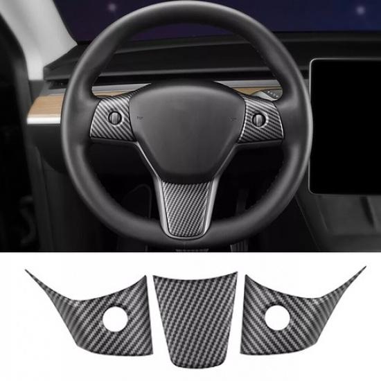 For Tesla Model 3 Y Matte Carbon Fiber ABS steering wheel patch Cover Trim 3PCS