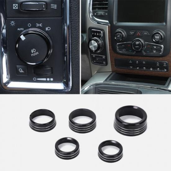 För Dodge RAM 1500 2013-17 Mittkonsol Strålkastarknapp Vred Ring Trim Svart
