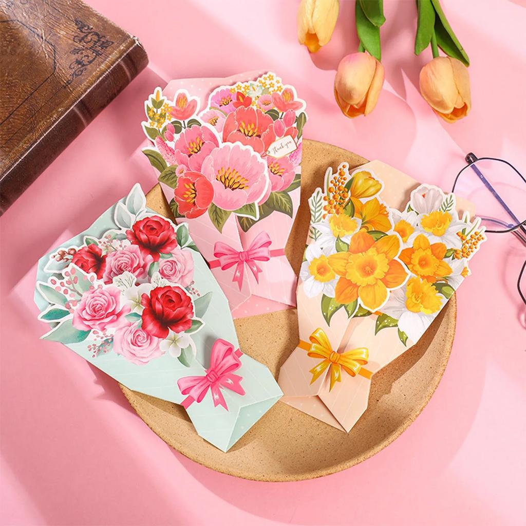 Bulk Blank Note Cards Bouquet Greeting Card Flower Modeling Birthday Gift Decoration Card Stereo Creative Easter for Daughter