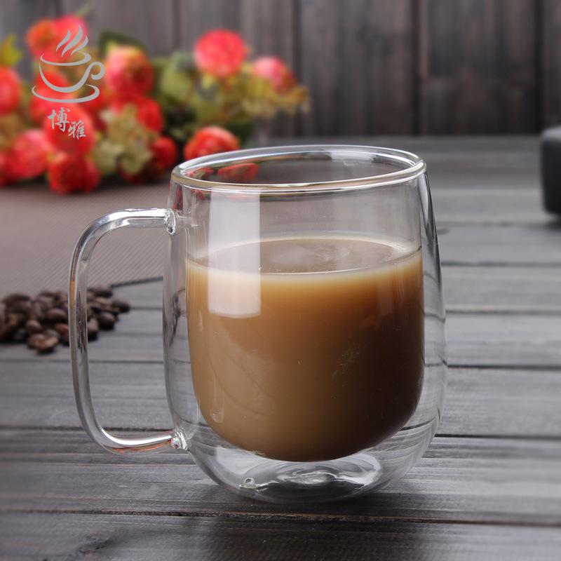 High borosilicate belt double glass transparent juice cup milk cup coffee cup thickened creative belly mug