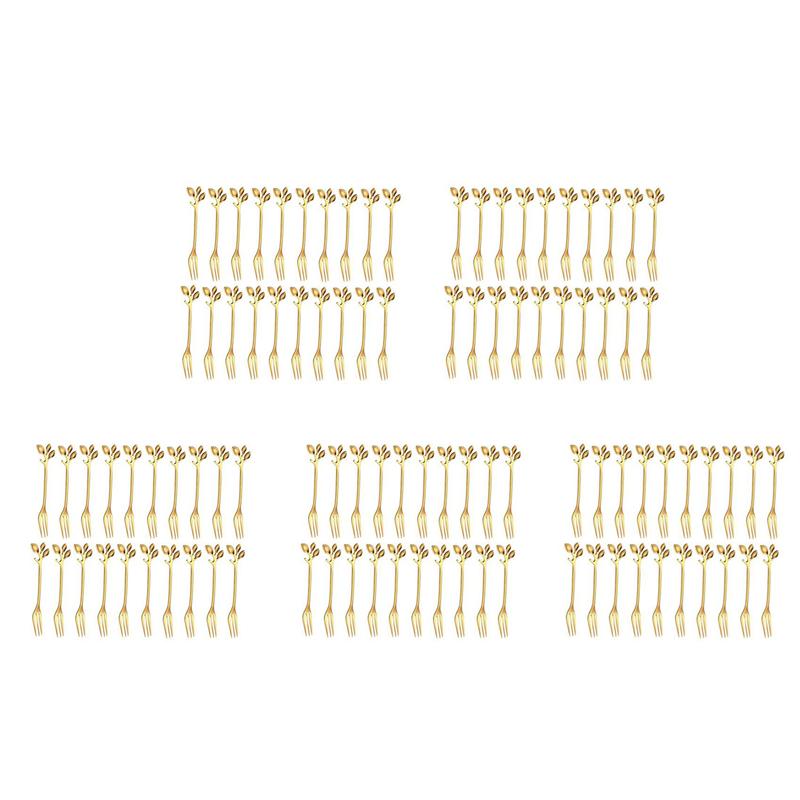 100Pcs Stainless Steel Flatware Fruit Fork Dinnerware Appetizer Snack Dessert Fork Kitchen Tableware Leaf Shape