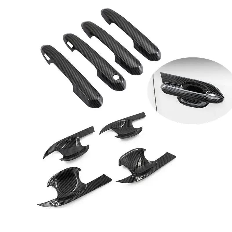 For Toyota Highlander Kluger Carbon Car Exterior Door Handle Frame Protect Decoration Cover Trim Accessories