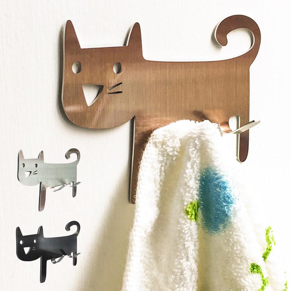 Stainless Steel Cute Cat Hook Wall Mounted Towel Hook Multipurpose Self-Adhesive Hook Practical Seamless Hooks Bath Robe Hook