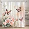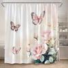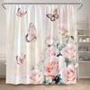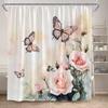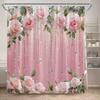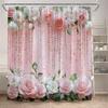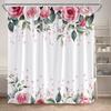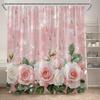 Rosa Ros Blommiga Duschdraperier Naturlig Grön Växt Blommor Alla Hjärtans Dag Badrumsdraperi Modernt Tyg Badrumsinredning med Krokar