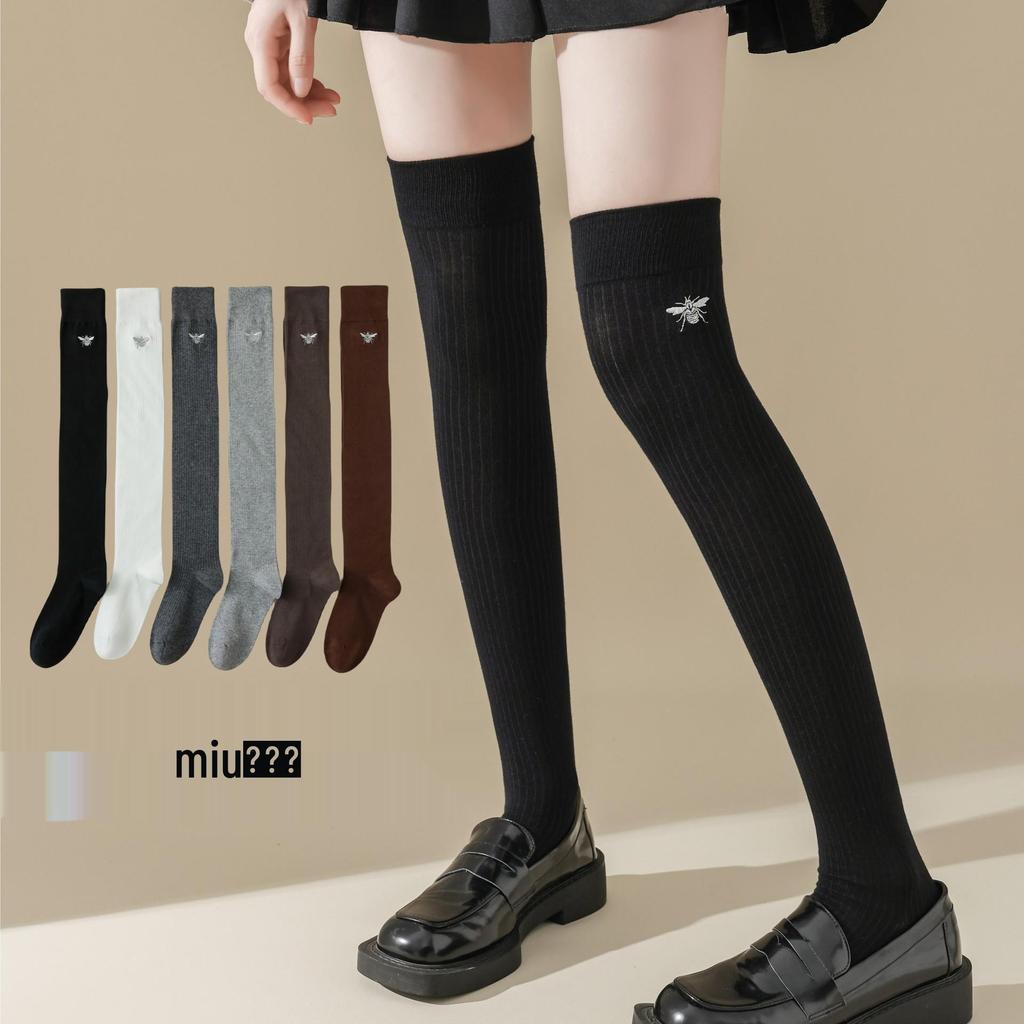 Damsockor i Miu-stil, bomull, mikropress, över knäna, för höst och vinter