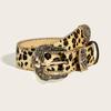 PU Leopard Print Belt Vintage Suede Waistband Gothic Carved Buckle Belt Streewear