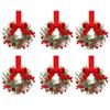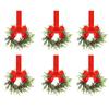6PCS/SET Christmas Kitchen Cabinet Wreaths with Ribbon Mini Christmas Wreath Small Kitchen Xmas Decor for Window Door