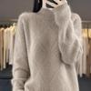 Temperament Casual Höst och Vinter Halvpolokrage Damtröja Ny Stil Västerländsk Stil Inre Stickad Topp